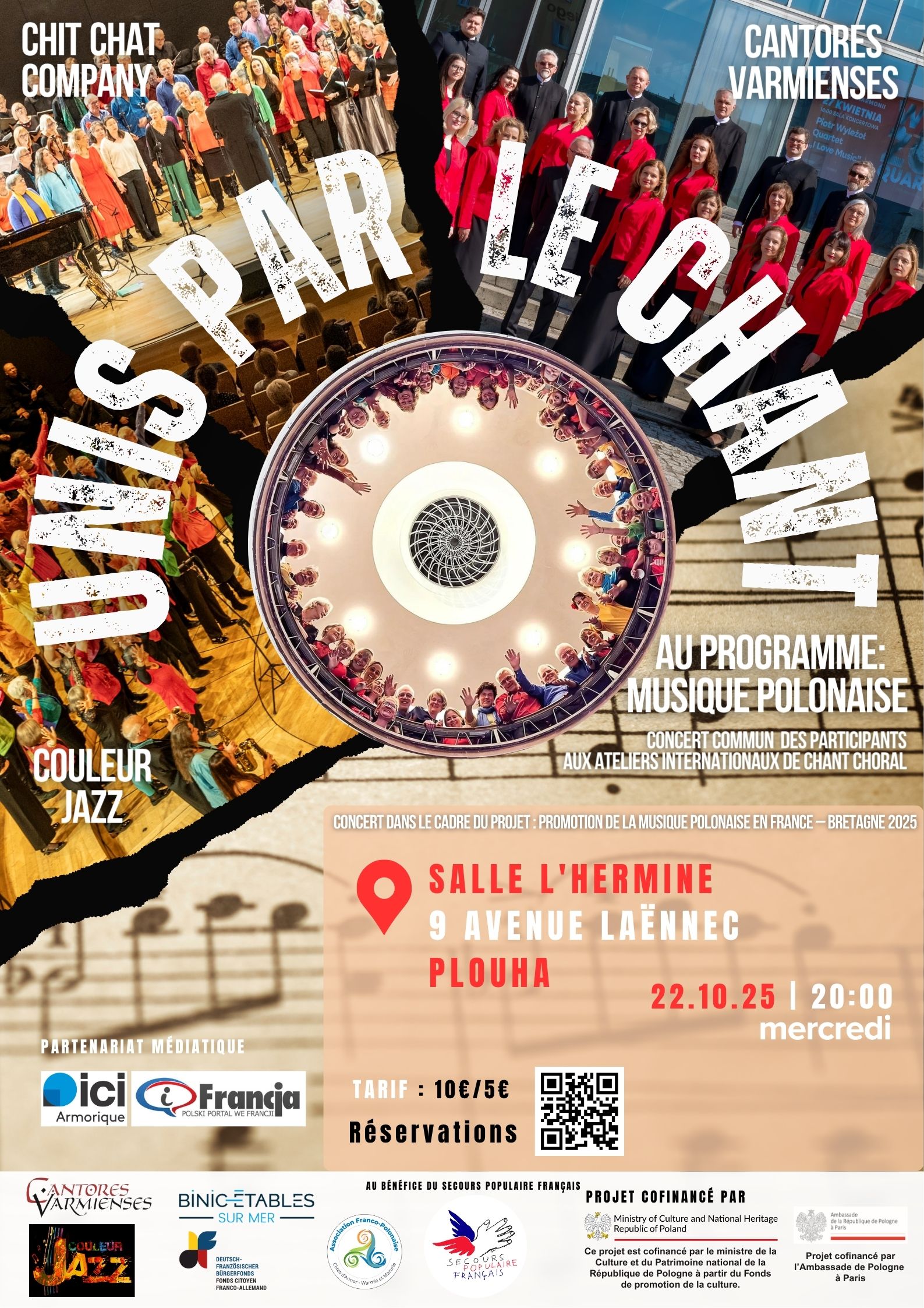 L’Association Franco-Polonaise Côtes d’Armor – Warmie et Mazurie et le chœur Couleur Jazz vous invitent à un concert international unique, réunissant :