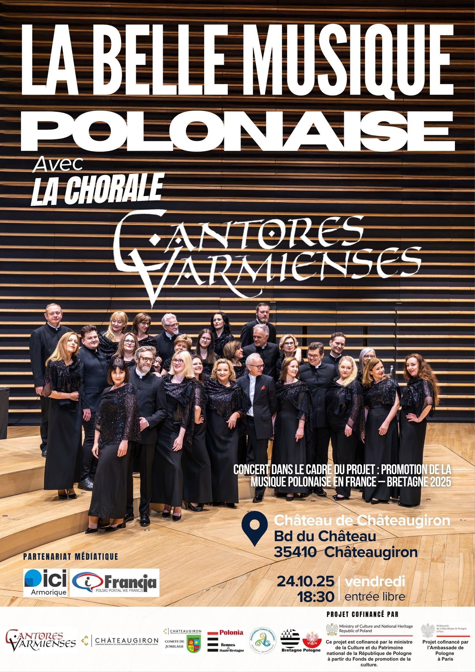 L’Association Franco-Polonaise Côtes d’Armor – Warmie et Mazurie a le plaisir de vous inviter à un concert exceptionnel du chœur Cantores Varmienses, de la Philharmonie de Warmie-Mazurie. Cet événement unique se déroulera dans la magnifique Cité de caractère, à quelques kilomètres seulement de Rennes, au sein du château de Châteaugiron.