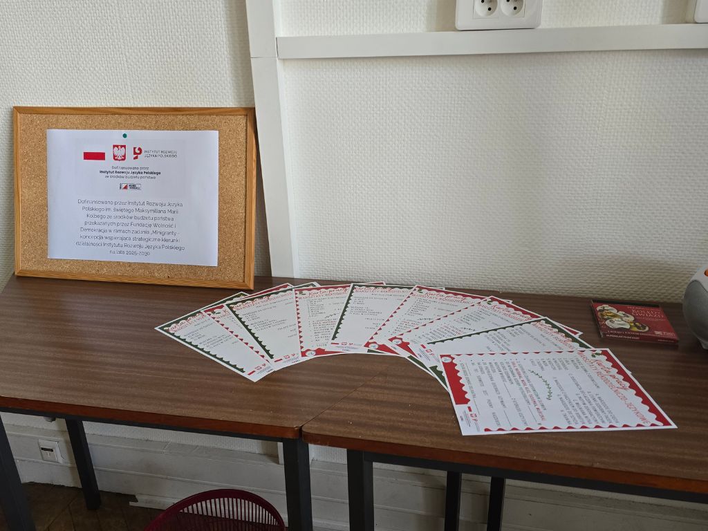 Ces ateliers ont été non seulement une occasion de création, mais aussi d’apprentissage pratique du polonais. Les participants ont enrichi leur vocabulaire lié aux fêtes et aux décorations fabriquées, à travers des fiches de travail, des exercices linguistiques et des activités en groupes mixtes. La combinaison de la pratique manuelle et de l’apprentissage de la langue a permis de mémoriser de manière naturelle de nouveaux mots et expressions.